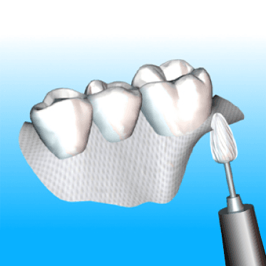 The translucent, aesthetic e-glass fibers allow for this optimum exterior placement–to stop the crack before it begins. The bonding and ability to grind and polish the fiber eliminate the annoying “fraying” of other reinforcement materials (FIG 1).